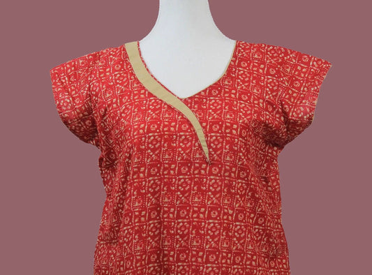 Red and Cream Printed Kurta | Indian Kurtas for Women
