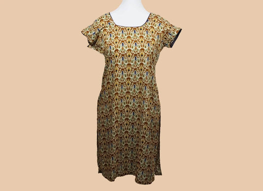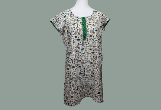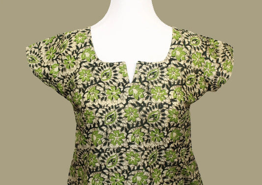 Cream, Black and Green Printed Kurta | Indian Kurtis for Women | Cotton