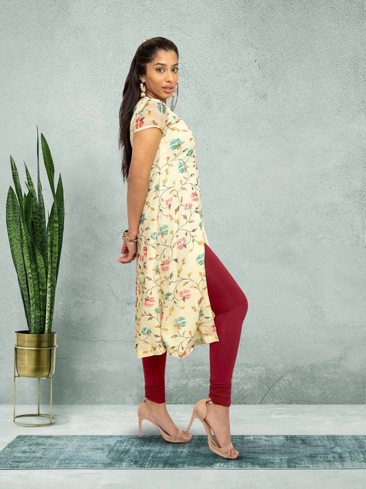Harmony Hues - Light Ivory Color Printed Kurta | Chiffon | Indian Kurtas for Women