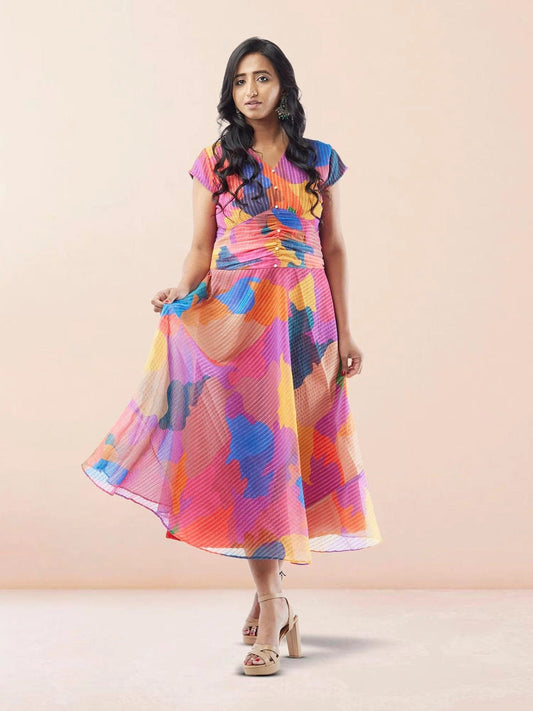 Multicolor Organza Dress with Beads | Indo Western Dress