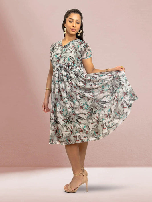 Enchanting Anarkali - Grey and Silver Color Dress with Mirror Work